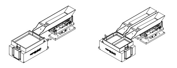 Lors du couplage de trémies de 1L, 2L, 3L, 10L et 15L avec l’Asycube 380 et l’Asycube 530, le « KIT DE FIXATION MODULAIRE DE LA TRÉMIE » en option permet de monter la trémie à la hauteur idéale.